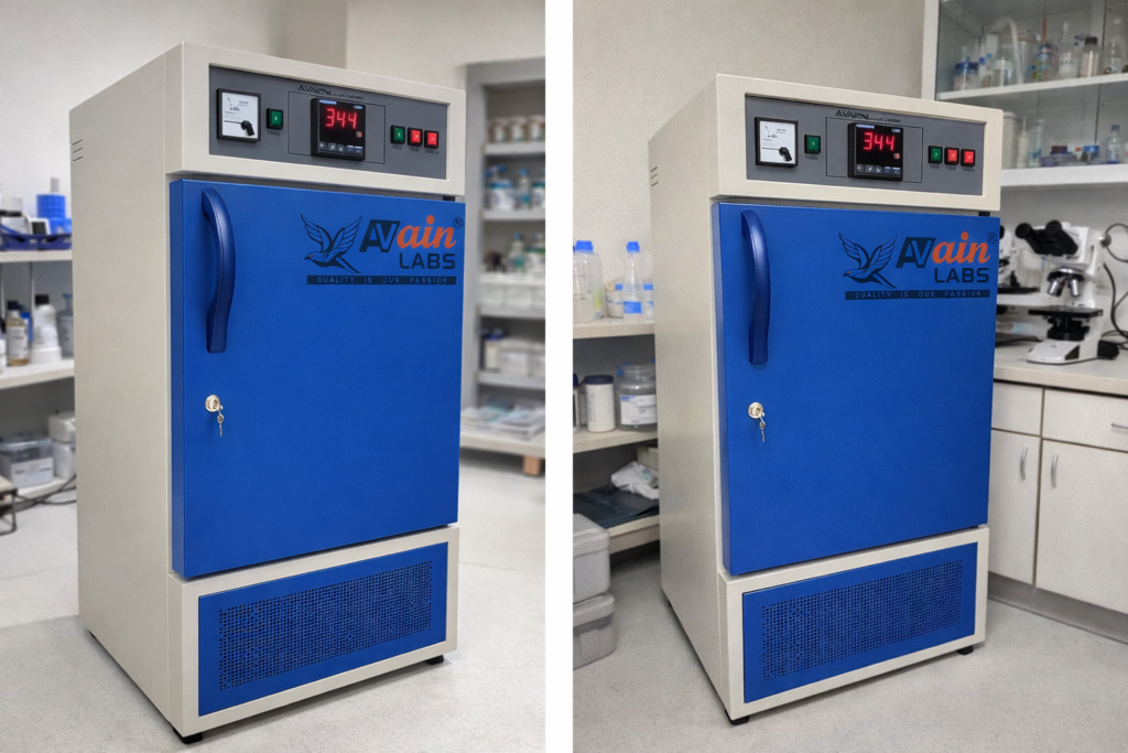 The AVAIN LABS BOD Incubator AL-506A1 is a precision-engineered laboratory incubator designed for Biochemical Oxygen Demand (BOD) testing, microbiological studies, and environmental research. With its compact 350x350x350 mm chamber size, this incubator delivers reliable performance, accurate temperature control, and uniform conditions essential for sensitive laboratory applications.